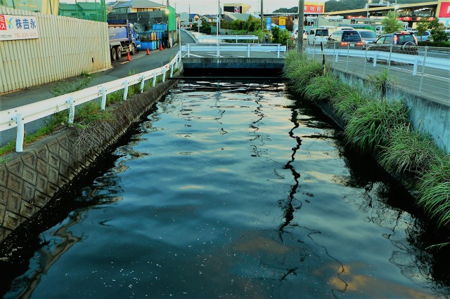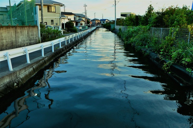浜田川は、清水区殿沢2丁目を起点として、ノダ清水工場南側の駒越中2丁目の住宅街を流れて、駒越北町の折戸湾に辿り着く河川です。
