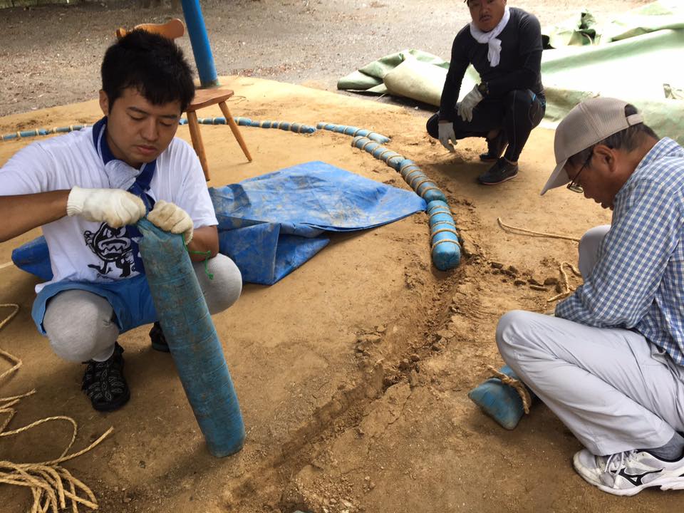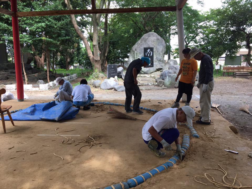 翌日、御穂神社の土俵の清掃作業に参加しました。土俵を保護していたシートをめくると、蛇やらムカデやらがうごめいておりました。