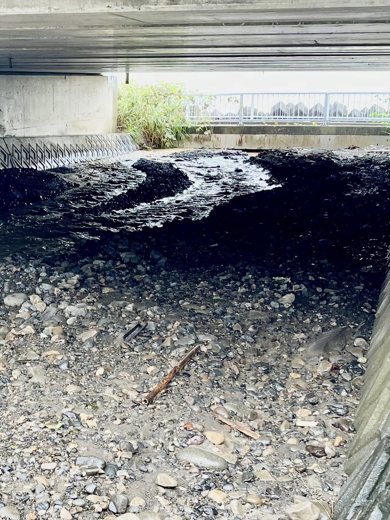 清水区蛇塚の濁沢川では、先週末の大雨で土砂が堆積していましたが、昨晩の大雨により、ついに国道150号バイパスの橋げた付近まで土砂が積もってしまいました(8/30AM撮影)。このままでは川が土砂によって塞がれる可能性があるため、市の土木事務所に再度対応を依頼しました。