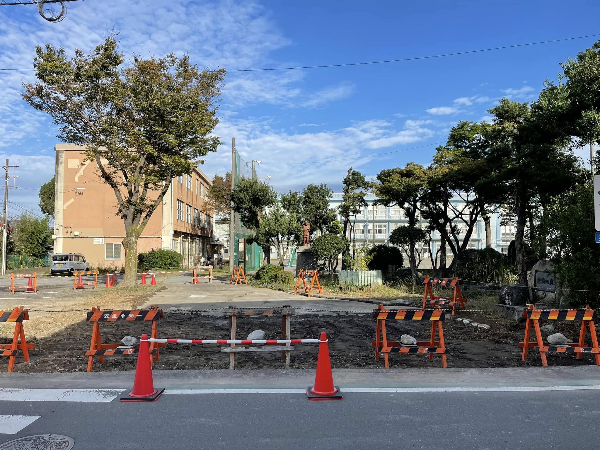 清水駒越小学校の歴史ある正門の再整備工事が、10月28日から始まりました。昭和9年に設置されたこの門柱は、地震時の倒壊リスクが懸念されており、PTA、自治会、学校の協議を経て、子どもの安全を最優先に考慮して再整備が決定されました。新しい正門は12月中旬頃の完成を予定しています。