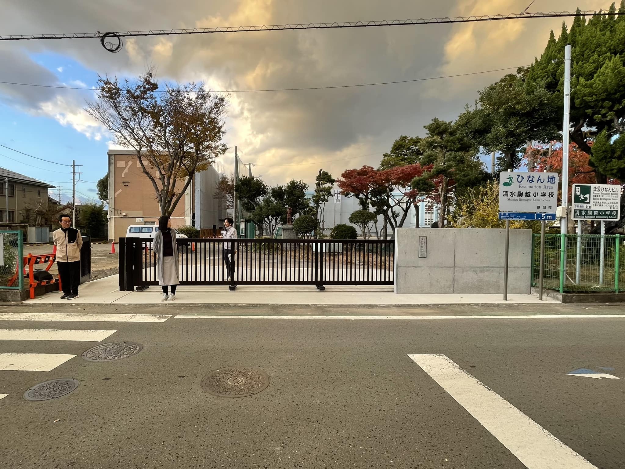 2024.12.12市政情報駒越小学校の正門リニューアル工事が本日完成 10月末から進められていた駒越小学校の正門リニューアル工事が本日完成しました。正門をセットバックし、横断歩道の溜まり場を確保することで安全性が向上し、見通しも改善されました。普段は使いやすい狭い門扉を、運動会などの行事の際には広い門扉を開けられる仕様となっています。明日から児童たちは新しい正門を通って通学します。このリニューアルは、創立150周年を迎えた駒越小学校にとって、新たな歴史の一歩となるでしょう。市政情報清水駒越小学校の歴史ある正門の再整備工事前の記事小島陣屋跡次の記事