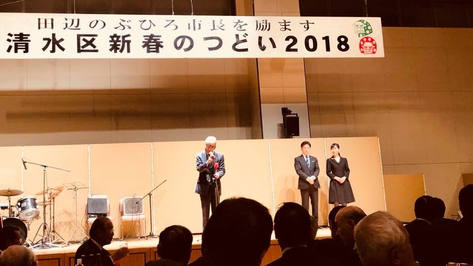 2018.02.18活動記録【田辺市長の清水区新春のつどい】 羽生結弦選手&宇野昌磨選手のワンツーフィニッシュに 日本中が歓喜に包まれている最中 【田辺市長の清水区新春のつどい】 は1000人の来場者のもと、盛大に開催されました。 活動記録【プロレスリング・ノア】前の記事【日本平ウォーク2018】次の記事