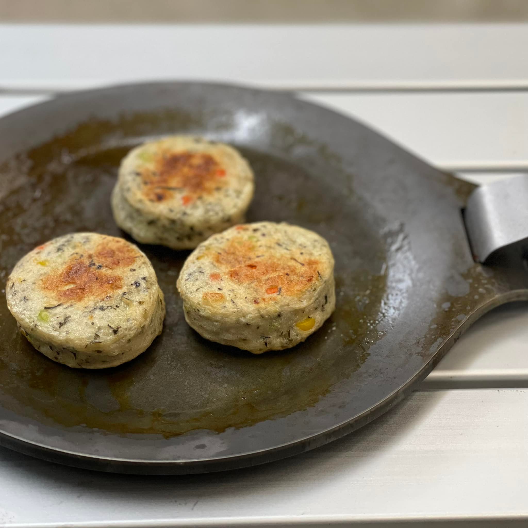 第40回 産業フェアしずおか2021 にて、東海大学が開発した新商品「あかもく揚げ」を発見。海の厄介者とされた海藻「アカモク」が使用されています。帰宅後、SWENで購入したソロ鉄板「マスダマル」で焼いて食したところ非常に美味。口の中で広がるアカモク由来の粘り気が、枝豆の歯応えと良くマッチしていました。新たな静岡名物となるよう期待しております。