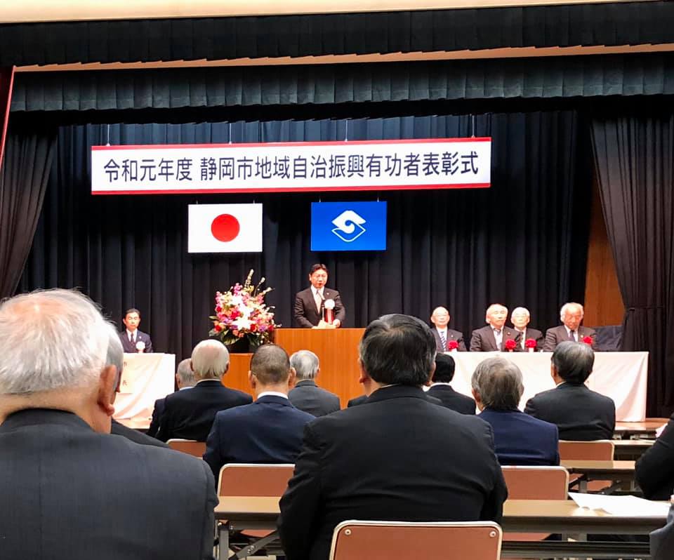 2020.02.5活動記録「地域自治振興有功者表彰式」 ▶︎2月5日、静岡市主催で、多年に渡る自治会長の任を称える「地域自治振興有功者表彰式」が執り行われました。▶︎市長は祝辞で、自身の恩師である松下幸之助翁が影響を受けた渋沢栄一翁を例にして、「組織のトップは後継者を育成する事が大切である」と説きました。活動記録自民党市議団緊急議員団総会前の記事「北部ルート」次の記事