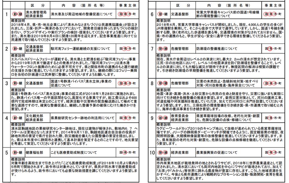 策定すると回答しました。ただし、策定後20年かけて整備していくとの事でした。自民党清水支部は、引き続き早期完成するように県に対して要望してまいります。