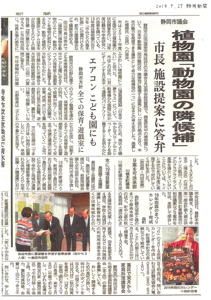 ▶︎平成30年9月26日、静岡市議会 9月定例会 本会議