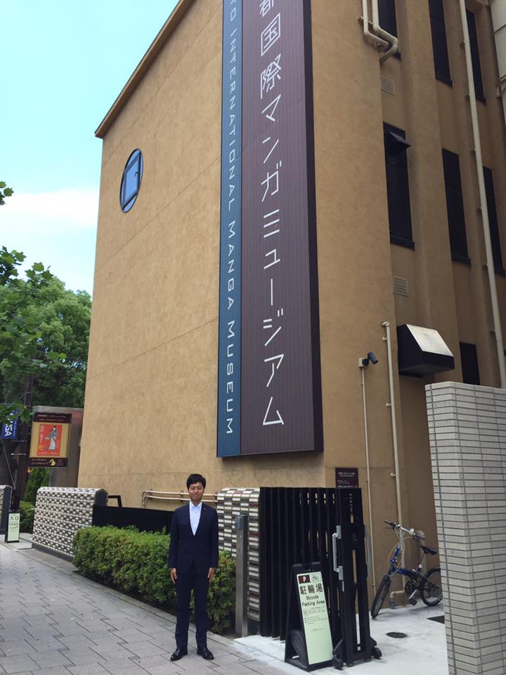 2日目は視察です。京都国際マンガミュージアムは、廃校になった小学校をリノベーションして完成しました。(京都市長の母校だったそうです)(片隅に二宮金治郎像がありました)