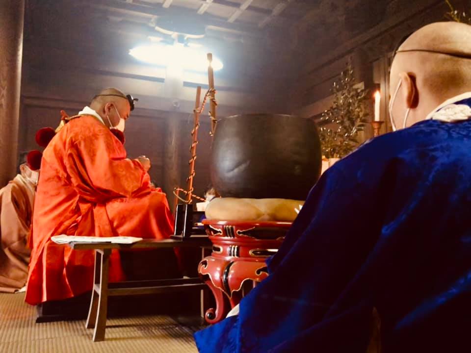 毎年12月15日・16日に開催の秋葉山大祭は、清水区民で知らぬ者はいない、約450年前から続く伝統のお祭りです。先ずは 峰本院にて「火の用心」のお札を購入後、正面の参道を登り山頂の 「秋葉山秋葉寺」を参拝。幸運にも護摩焚き法要の最中で、入口で係の方が手招きして本堂の中へ招き入れてくれました。お陰様で護摩の煙を身体中に浴び、今年1年の厄を祓い落す事が出来ました。因みに、緋色の法衣を纏った御住職は、知り合いの天野院明住職でした。