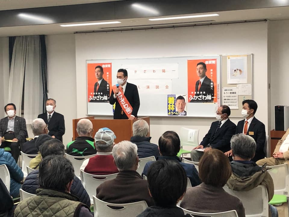 衆議院議員選挙 5日目、#駒越生涯学習交流館 で #ふかざわ陽一 候補の個人演説会。静岡県は新型コロナ新規感染者数が1年ぶりゼロ人だったとはいえ、感染症対策に細心の注意を払いました。もう一つ、10月24日は参議院静岡補選の投票日、 #若林ようへい 候補の必勝を祈念しております。#静岡4区