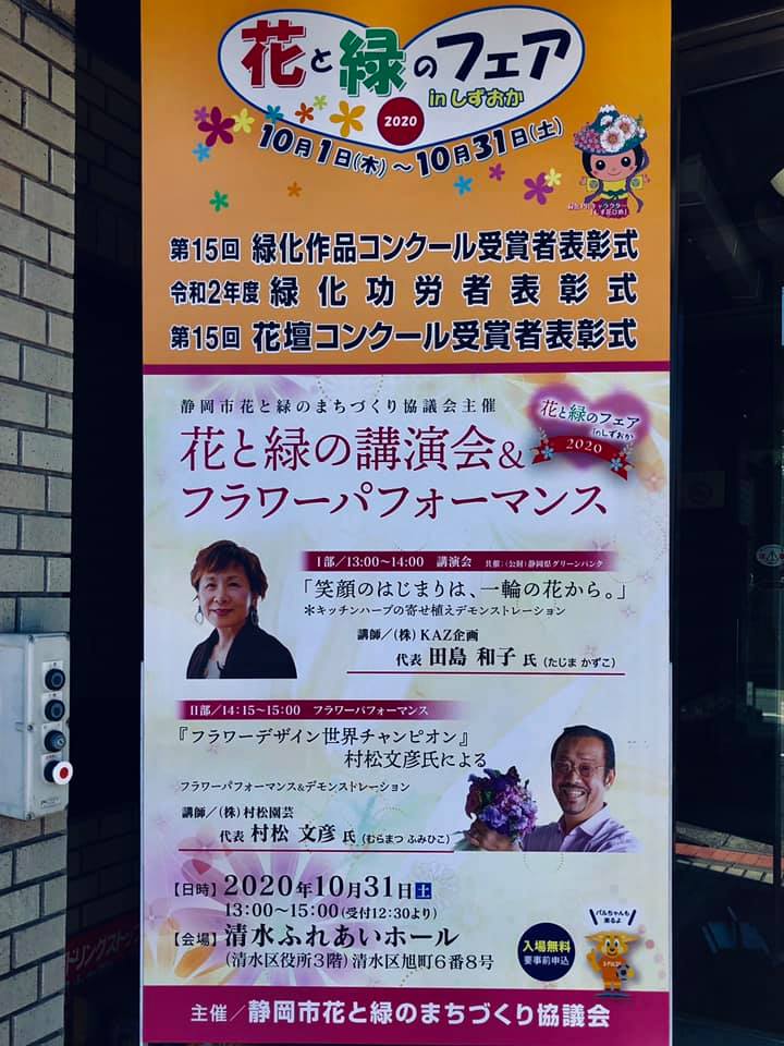 静岡市「花と緑の表彰式」が開催されました。子ども達が描いた722作品の中から選ばれた18作品が、清水庁舎1階に11月16日まで展示されます。そして、午後には「花と緑の講演会&フラワーパフォーマンス」が開催。講師の村松文彦さんは、平井正樹市議のお花の師匠です。講師が制作した作品は、11月6日まで各区役所の1階に展示されます。