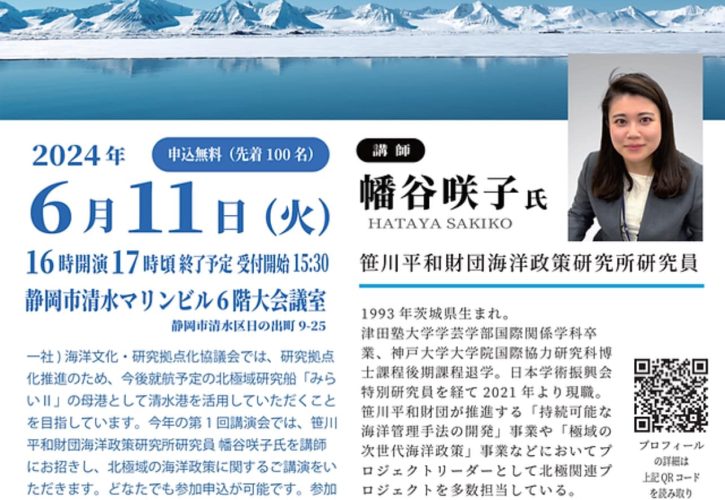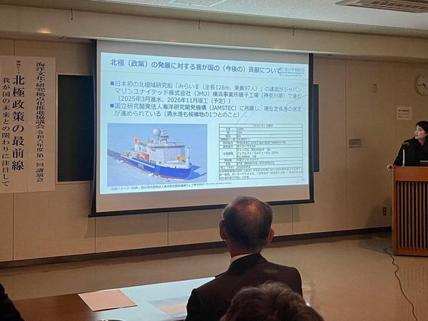 昨日、駿河湾の国際研究拠点化を目指す「(一社)海洋文化硏究拠点化推進協議会」の講演会「北極政策の最前線」を聞きました。日本はアジアで最も北極海に近く、新たな航路として活用出来れば、スエズ運河経由の南回りと比較して40%航海距離が短縮されるそうです。現在、JAMSTECは砕氷機能を持つ北極域研究船「みらいⅡ」を建造中で、観測研究のほか、資源調査や新たな航路開拓も期待されます。総建造費は約339億で、2026年に完成予定です。清水港への基地誘致が熱望されています。