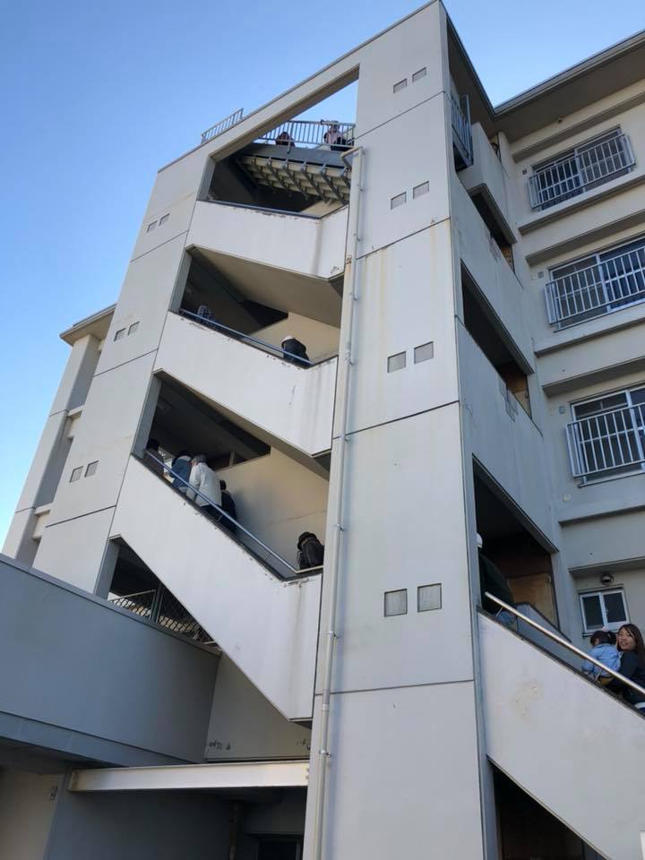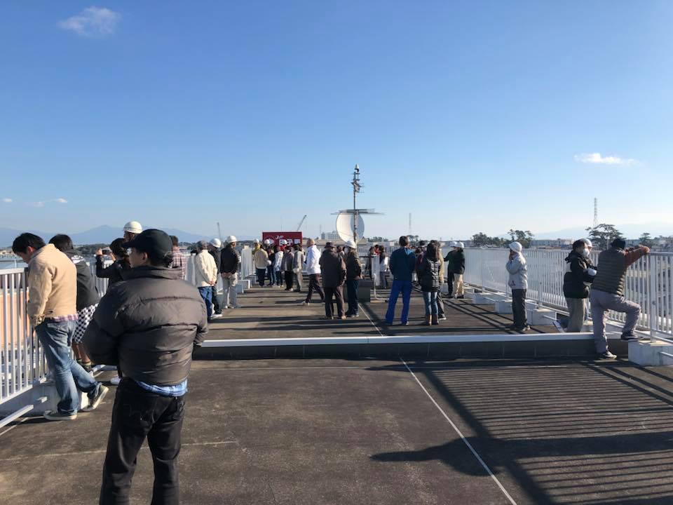 ▶︎ 写真は国土交通省 清水港湾事務所 宿舎屋上への避難訓練の様子です。駒越北町は駒越地区12自治会の中で最も折戸湾に近く、津波浸水域に想定されているため、迅速な避難が求められる地域です。